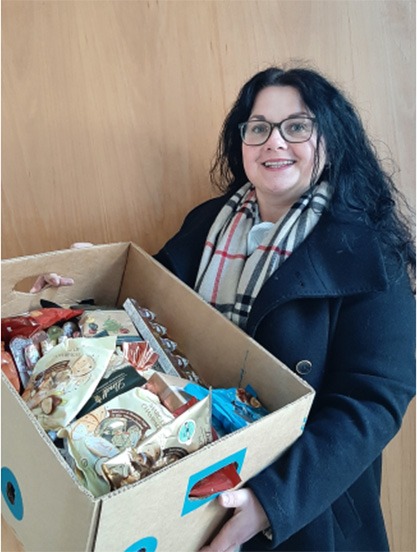 Tanja Friedrich durfte für die Kirchengemeine viele, viele Süßigkeiten von EDEKA Seidl aus dem Fritz in Kulmbach abholen.